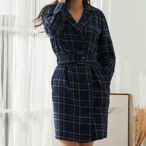 [다잇템][다잇템] 여성 베이직 중간 스트랩 오버랩 격자 남방 원피스_22815951_588872