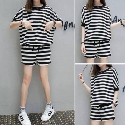 [모노무드]LMO 원형넥 줄무늬 베이직 반소매 하프바지세트아이템