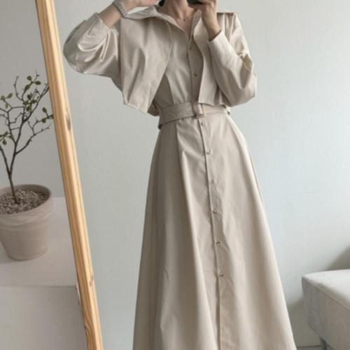 [다잇템][다잇템] 여성 들러리 출근용 FW 남방 혁대 롱 원피스_23438072_588872