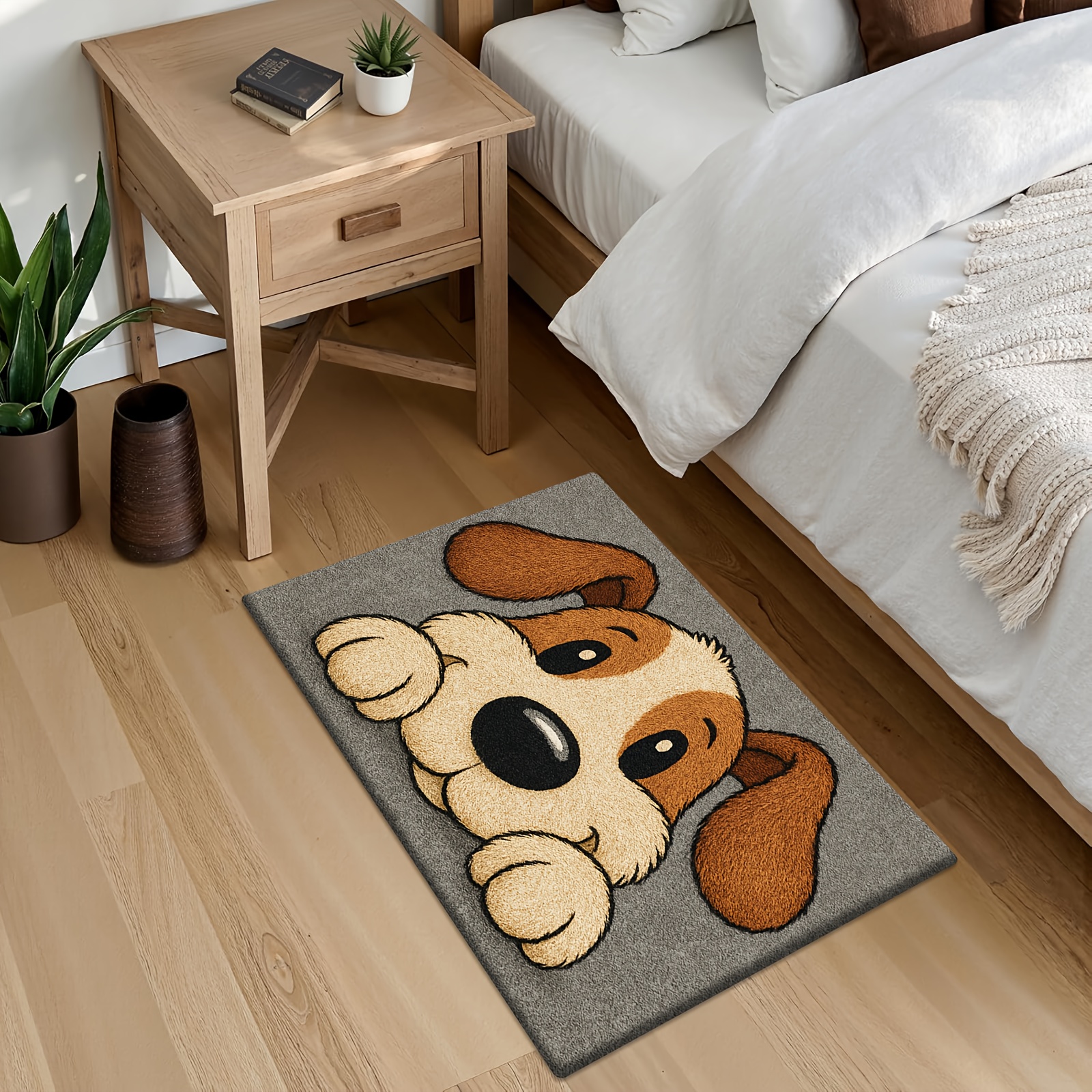 TEMU 제품 [플란넬 + 1cm 두께 스펀지 소재] 귀여운 강아지 머리 프린트 도어매트 | 침실, 주방, 식당, 욕실 등 다양한 공간에 적합, 미끄럼 방지 및 세탁기 사용 가능, 다기능 플란넬 매트, 부드럽고 편안하며 실용적, 휴일 장식용