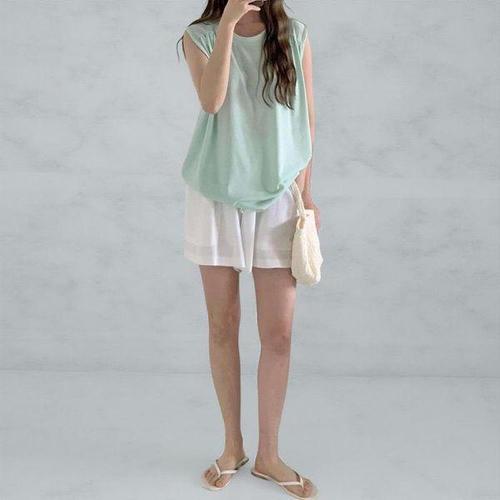 [신상오픈런]여성 레이온 스판 핀턱 셔링 소매 티셔츠 나시