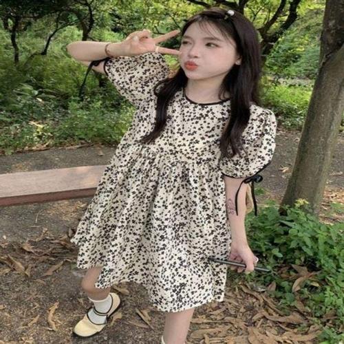 [에이치플러스몰]소녀 인기 여성 플라워 셔링 감성 미니원피스 소매 등