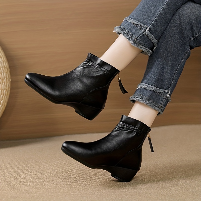 TEMU 웨지 스퀘어 힐 나파 그레인 미드 힐(3-5cm) 숏 윈터 부츠 패션 부츠|패션