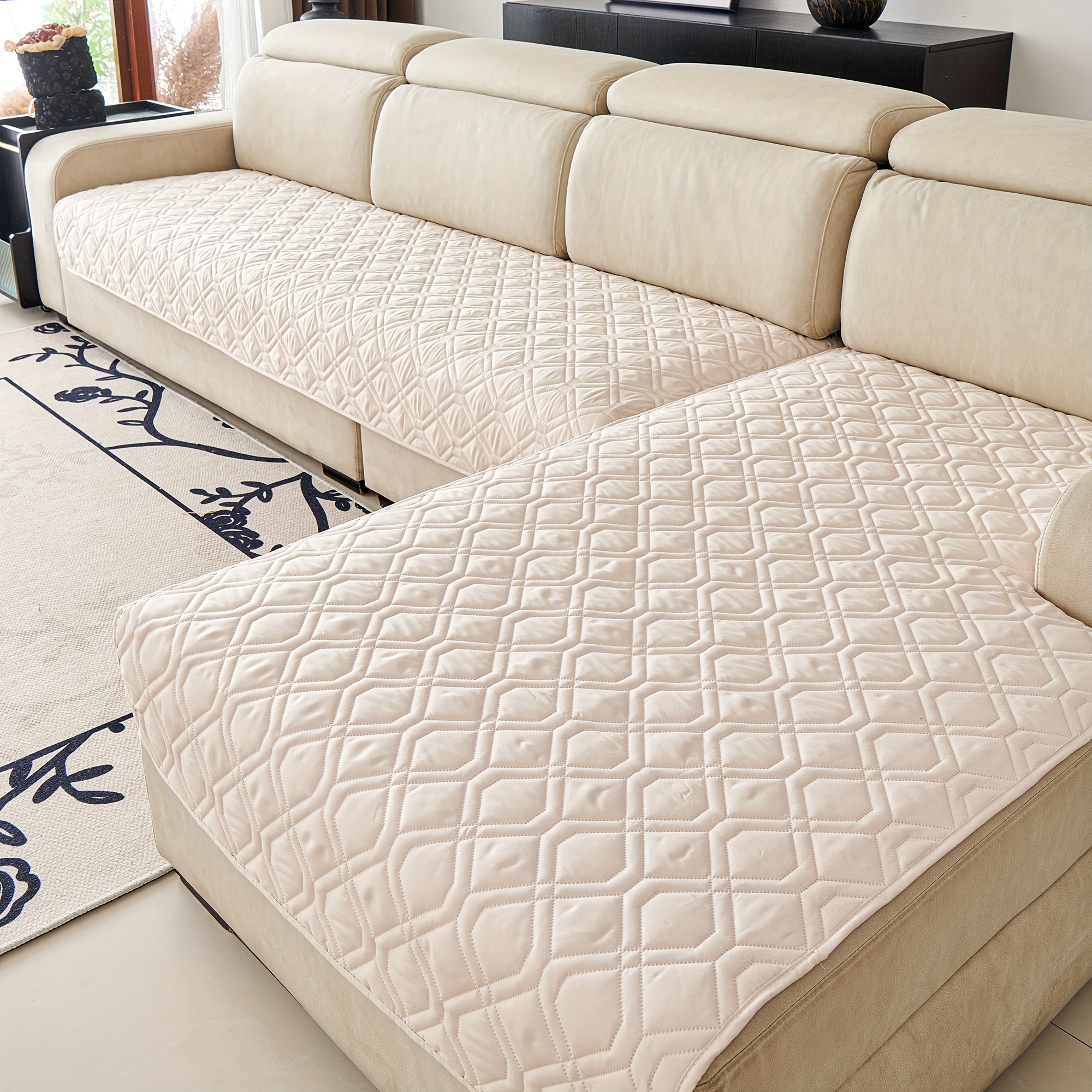 TEMU 2개 세트 L자형 소파 커버 - 강력한 애완동물 친화적 쿠션 보호, 미끄럼 방지 모듈러 소파/로브시트/슬리퍼 섹션용 소파 커버 (기계 세탁 가능), 스팟 & 스크래치 예방, 기하학 패턴 디자인, 쉬운 착용 시스템, 소나 패턴 텍스처
