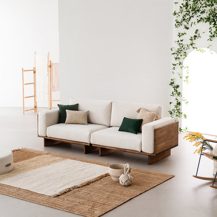 봄소와 참이 3.5인용 알파인 패브릭 원목소파 + 스툴