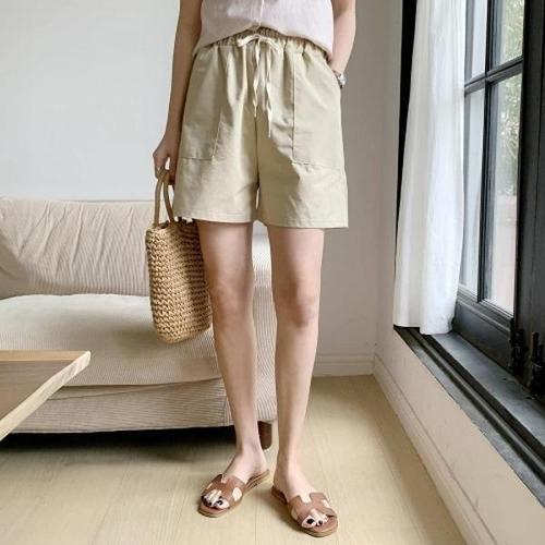 [브이와이][VY] 여자 면원단 주머니 고무줄 자수 민무늬 진 휴가룩 짧은 팬츠_14660452_588847