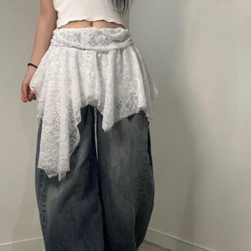 여성 시스루 언발 레이어드 스커트 레이스 미니 치마 2color 속바지 WFJCDBM