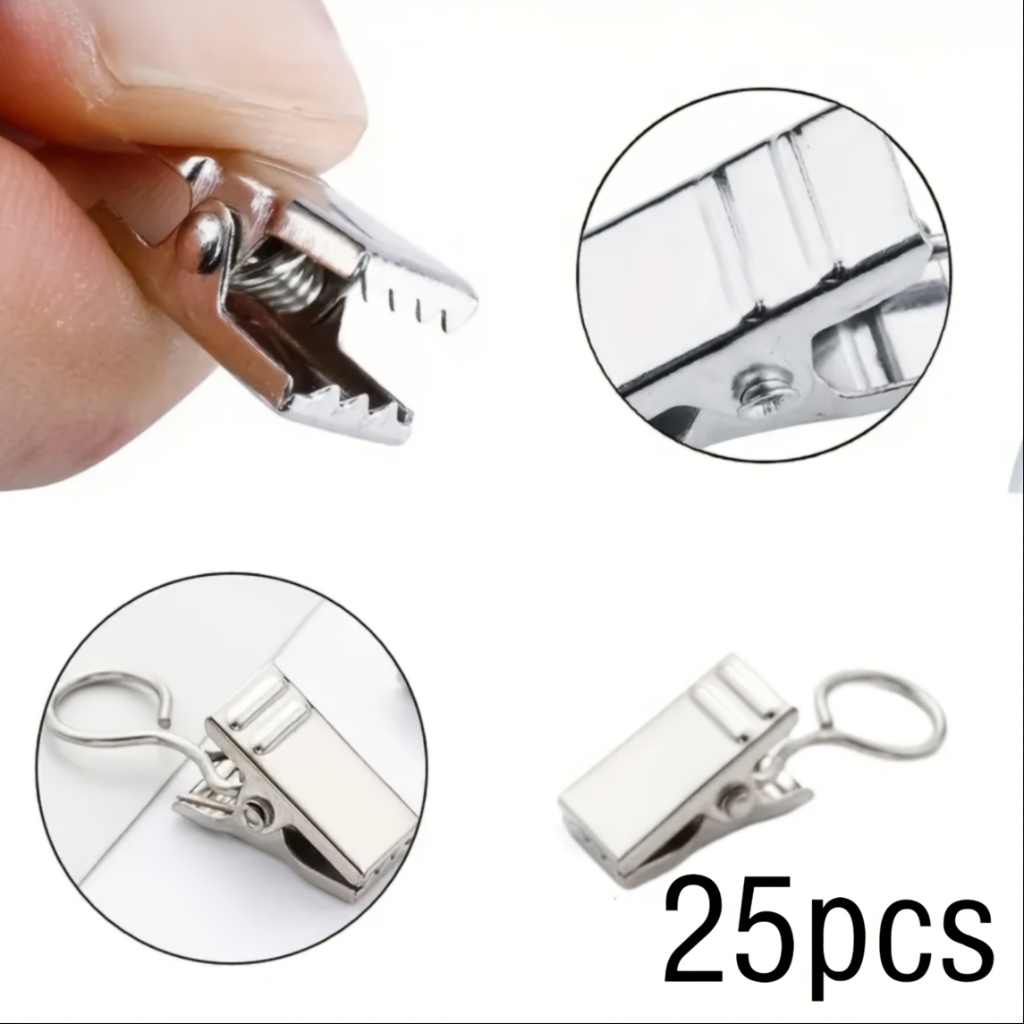 TEMU 25개 은색 메탈 지그잉 커튼 클립 및 후크, 사진 벽, 커튼 트랙 및 야외 및 여행용 카드 고정에 적합 (물티슈 클립, 피크닉 매트 고정), 가정 정리 (식탁보, 수건, 플래츠 클립)
