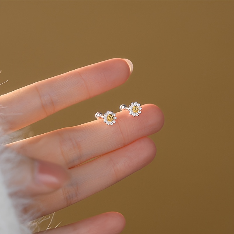 TEMU 세련된 여성용 귀걸이, 섬세한 꽃 디자인, 925 실버와 합성 지르코니아 제작, 소형 달콤한 액세서리 (박스 미포함)
