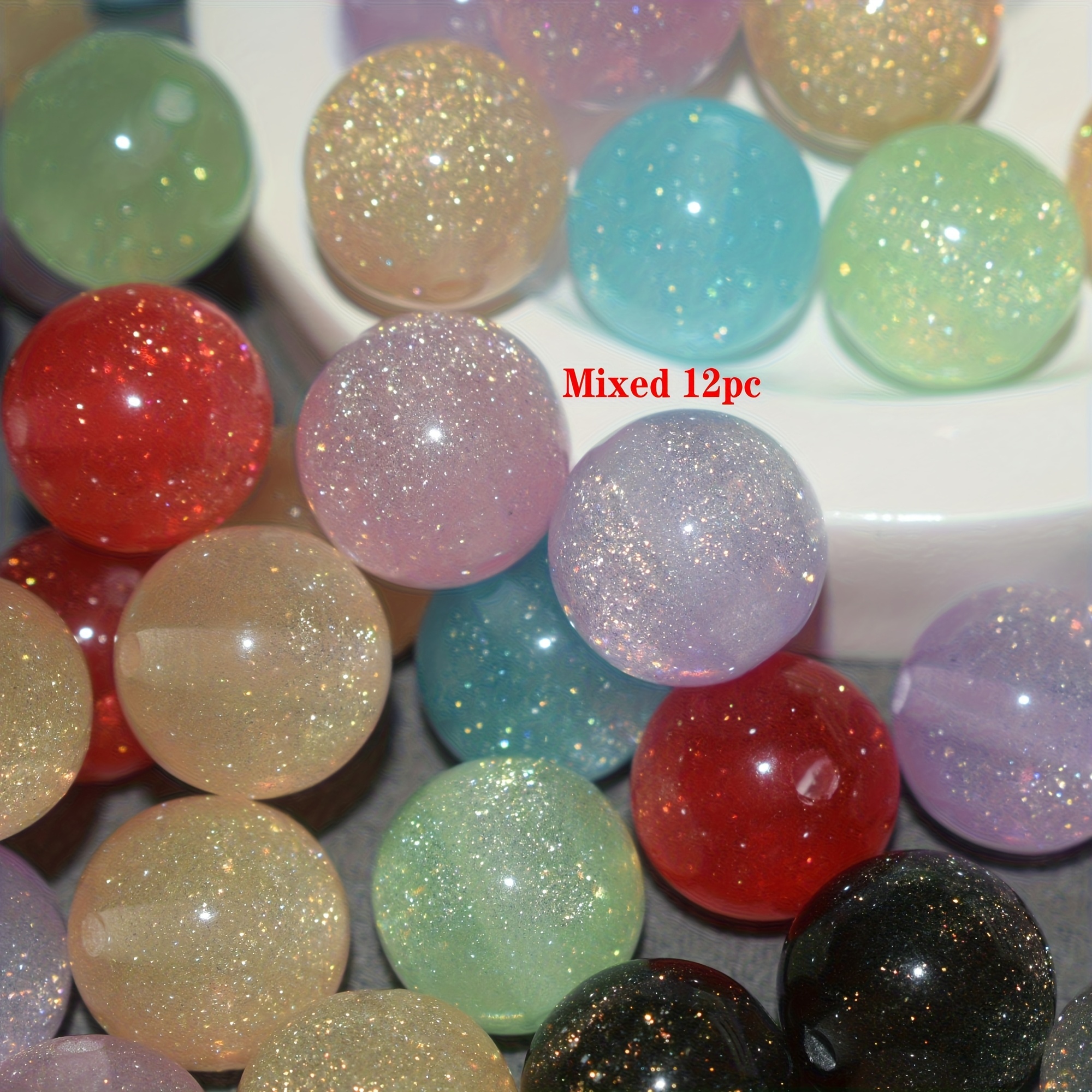 TEMU 12가지 혼합 색상의 반짝이는 글리터, 16mm 레진 비즈, 반짝이는 빛을 발산하며 주얼리 제작에 완벽, 장식 비즈, 비즈 장식, 주얼리 용품, 선물 및 고품질 부품