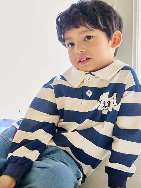 [키즈]토이 베어 컬러 블럭 럭비 티셔츠_BP53TC310
