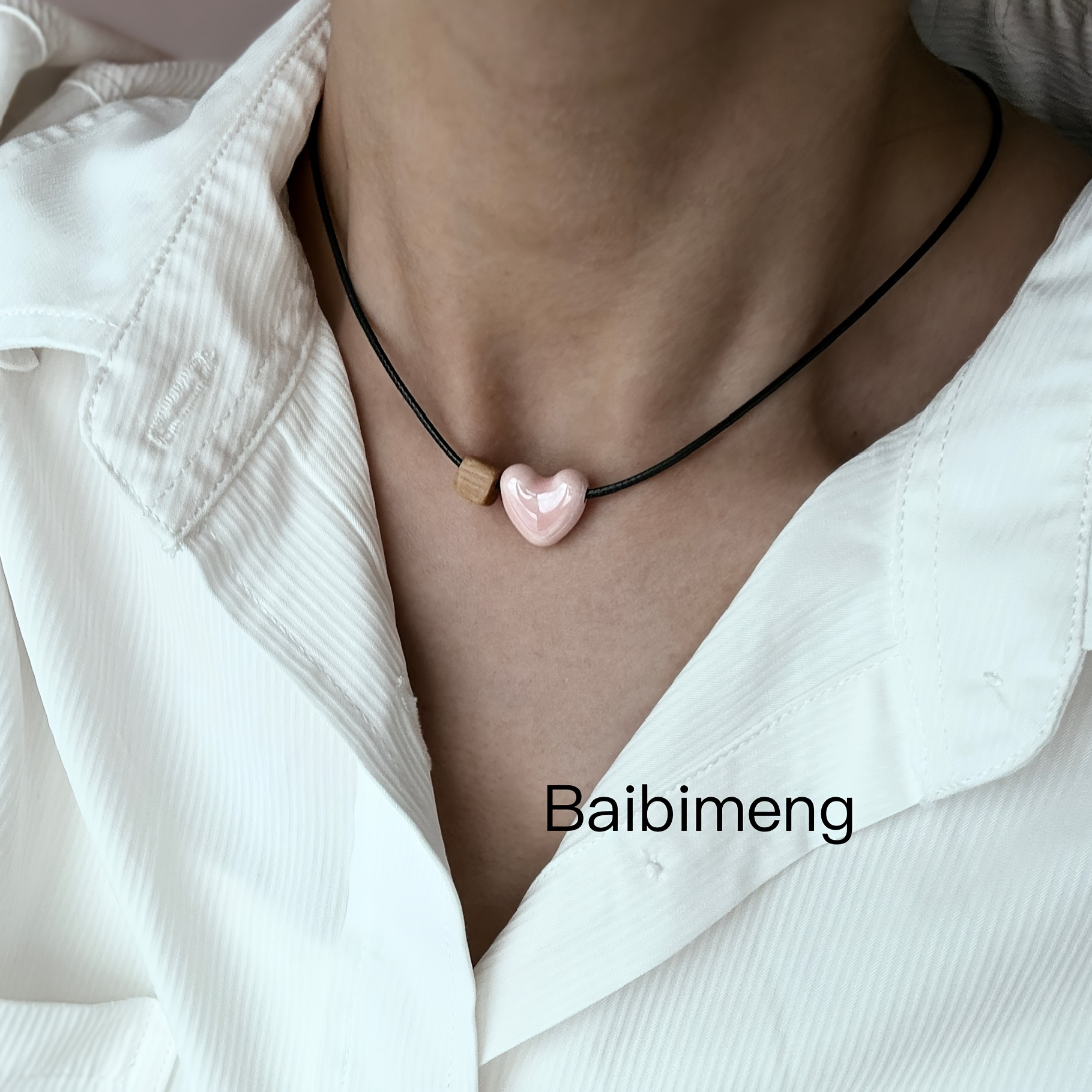 TEMU 여성용 브라운 세라믹 목걸이 - 세라믹 펜던트 & 은은한 브라운 체인, 일상 착용에 적합한 선물, 사계절 활용 가능한 액세서리