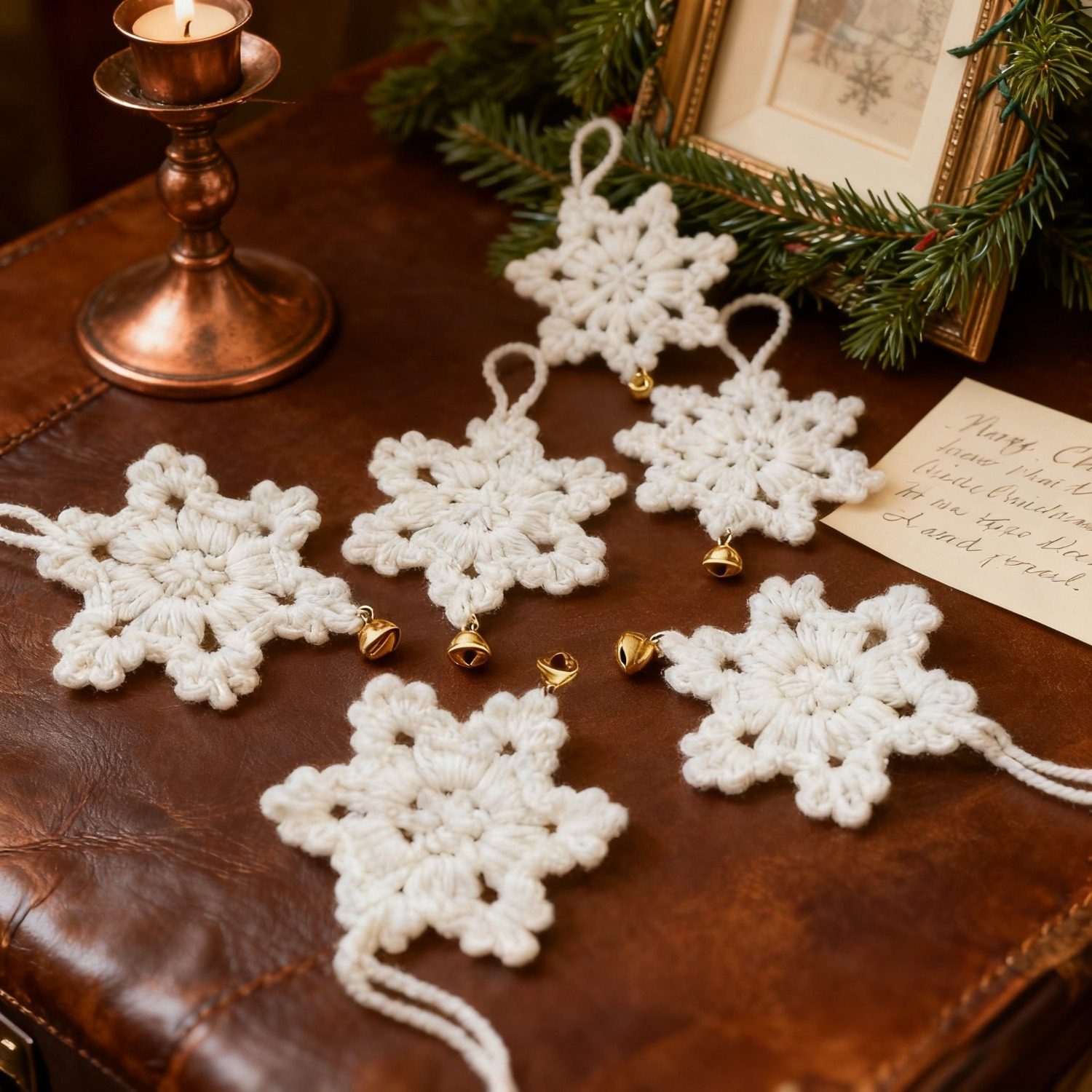 TEMU 6개 코바늘 뜨개질 눈꽃 행잉 크리스마스 트리 장식 - 흰색에 금색 벨, 패브릭, 전기 불필요, 가정 및 자동차 장식에 적합, 크리스마스 및 휴일 축하 행사에 이상적인 선물, 크리스마스 장식, 특이한 키링, 가랜드, 계절 장식 겨울, 아크릴, 열쇠고리 키링, 어린이집 가을 환경꾸미기