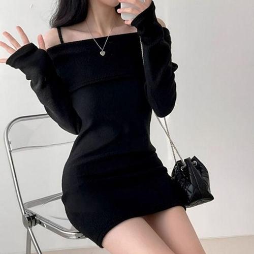 [다잇템_패션]여자 볼드숄더 오픈 페미닌 스웨터 원피스