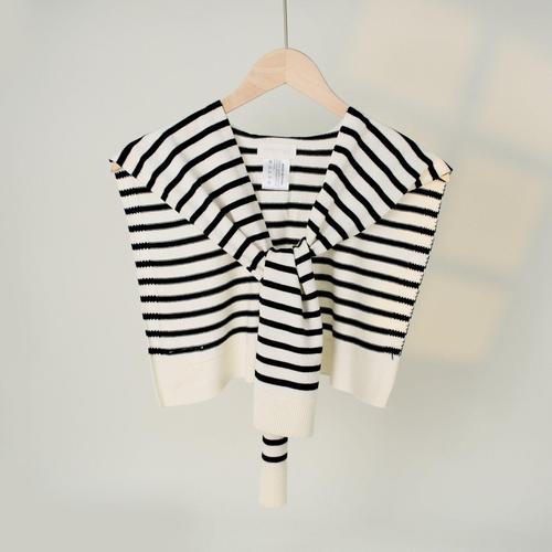 스트라이프 니트 케이프 어깨숄 머플러 판초 가디건 워머 WFKM0NH