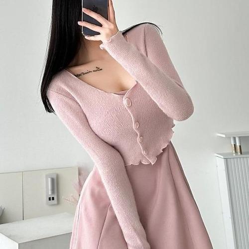 [다잇템][다잇템] 여자 숏가디건 코르셋 페미닌 니트원피스 세트_18873917_588872