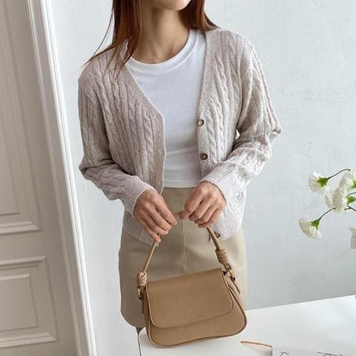 [신상오픈런]|KDJ442D|엣해루 V넥 여성 일상복 꽈배기 가디건 가을 양모 숏_18160796_597559