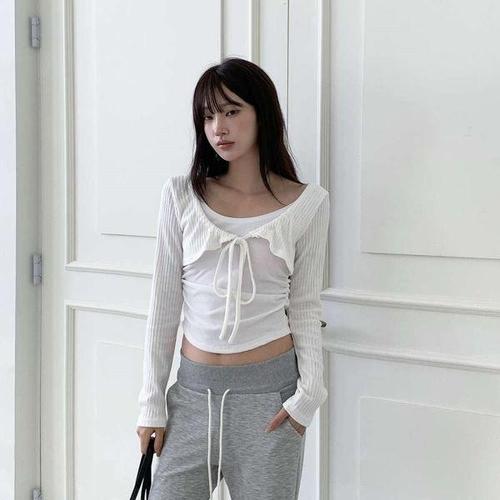 [다잇템]여성 숏가디건 롱슬리브 탱크 코디 레이온 골지