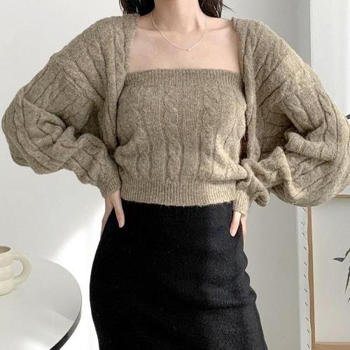 [다잇템][다잇템] 여자 탱크 꽈배기 카디건 벌룬 숏가디건 니트탑 세트_18955005_588872