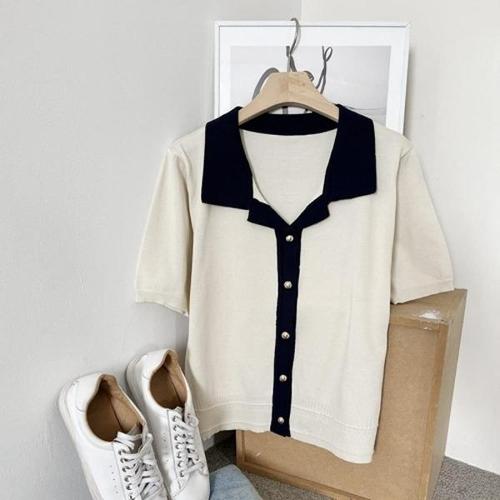 [신상오픈런]|CDJ3B07|츠이베 숏슬리브 썸머 선 배색 여성 사무실 가디건 카라_18160087_597559