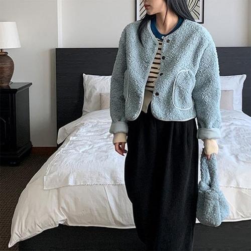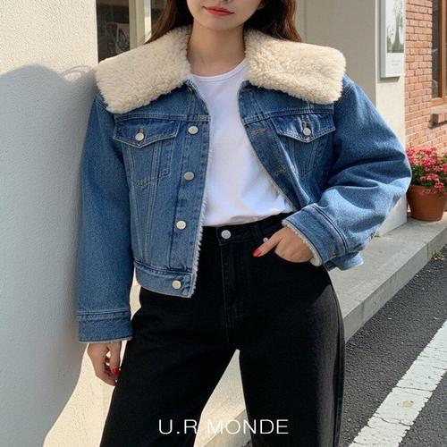 [유아몽드]여성 데님 양털 숏자켓 빅카락 크롭 청재킷 뽀글이 숏