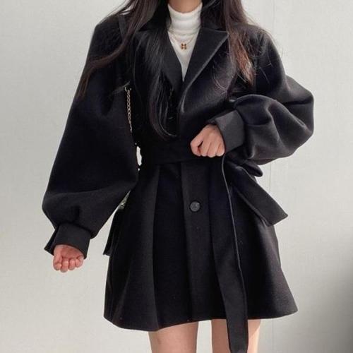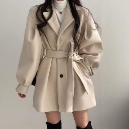 [신상오픈런]여성용 데일리 패션 고급 벌룬 소매 벨트 숏코트 (46201392)