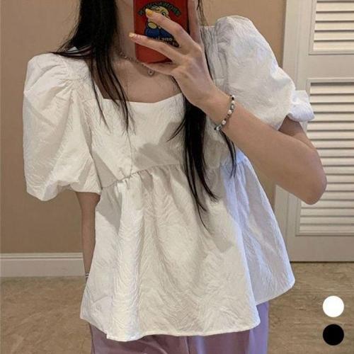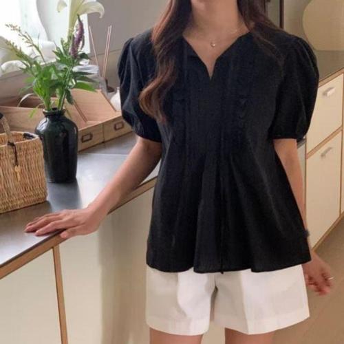 로맨틱 벌룬소매리본디테일 심플 숏티 드레스셔츠 WFK204F