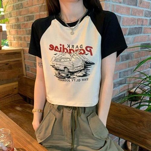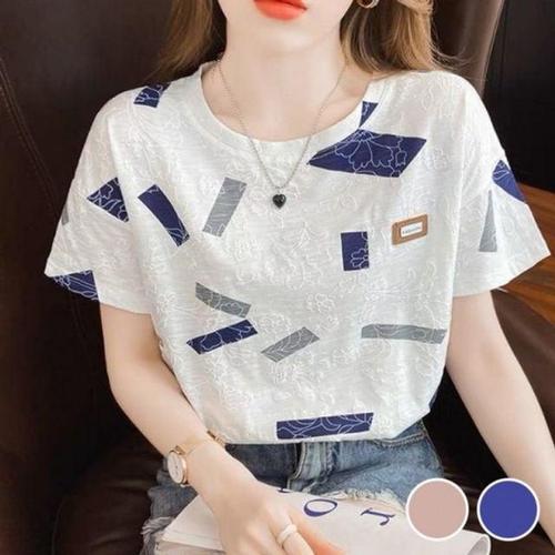 여성용 입체 프린트 스퀘어스탠다드 숏티 셔츠 WFK2041