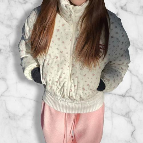 |CCJ6C7D|여성용 데일리 사랑스러운 꽃무늬 캐주얼 경량 숏패딩