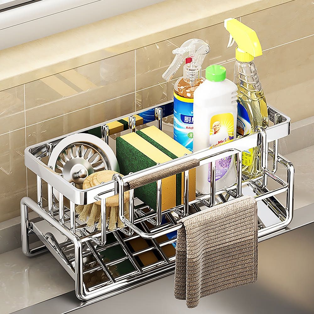 싱크대 물빠짐 거치대 스텐 행주 거치대 수세미 세제 보관함 정리함 행주 걸이