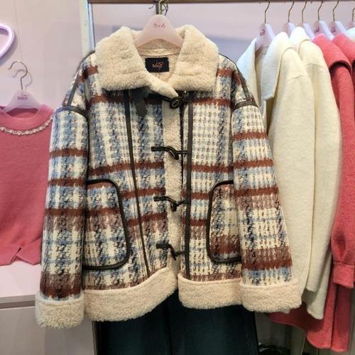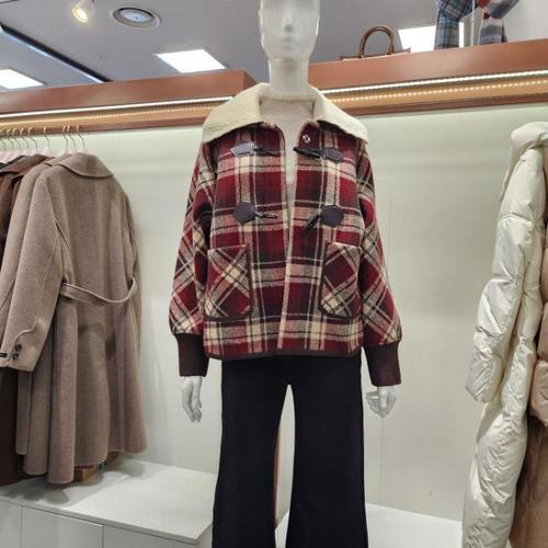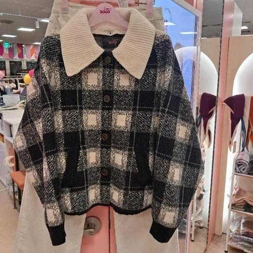 수스 HC04 니트 카라 배색 체크 자켓 S254NJKA61