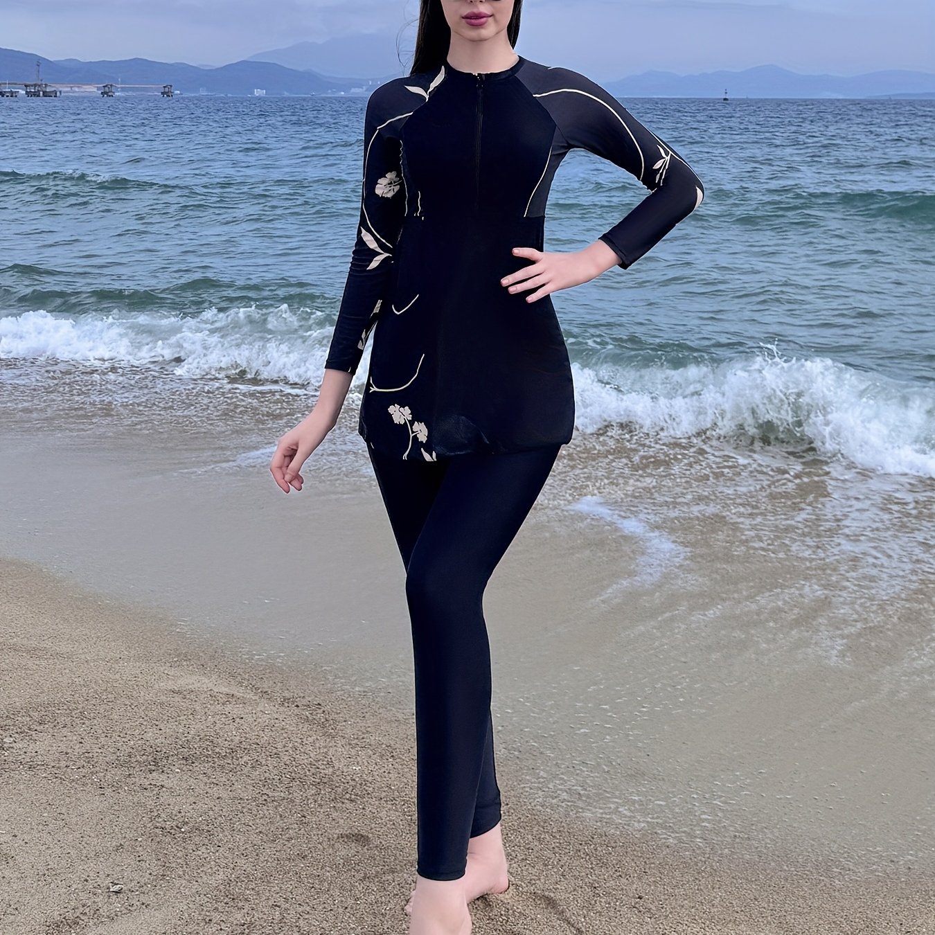 TEMU 여성용 수영복, 분리형 바디, 2023년 신스타일, 보수적, 자외선 차단, 긴팔 및 바지, 다이빙 여성용 온천 수영복