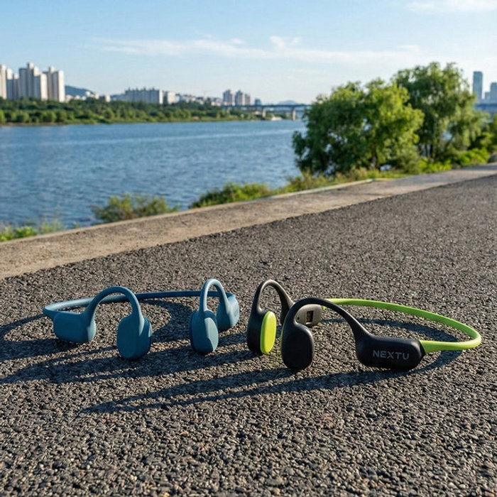 넥스트유 이어비트B1 오픈형 골전도 이어폰 IP68 완전 방수 방진 블루투스 무선 이어폰 런닝 수영 자전거