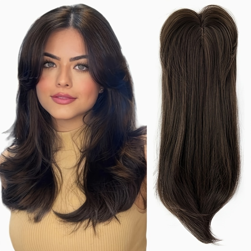 TEMU 여성을 위한 우아한 직모 헤어탑퍼 - 자연스러운 보풀로 가득한 전체 헤드 커버지, 안전한 핏, 스타일링이 쉬움, 얇은 헤어를 위한 완벽한 헤어피스, 세련된 헤어피스, 안전한 핏 헤어피스