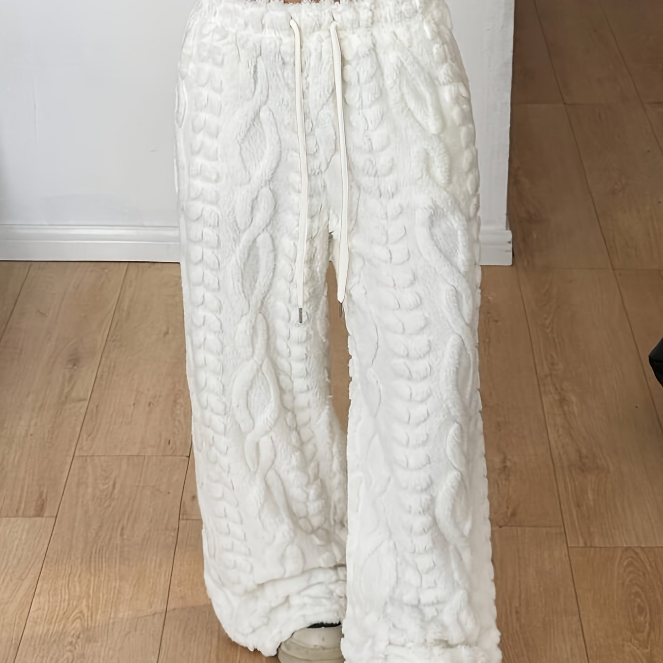 TEMU 여성용 겨울 따뜻한 두꺼운 퍼리 와이드 레그 팬츠 - 우아한 루즈핏 트라우저, 조절 가능한 드로스트링 허리, 단색 (블라우스/스커트/드레스와 호환), 세탁기 사용 가능한 추운 날씨 의류