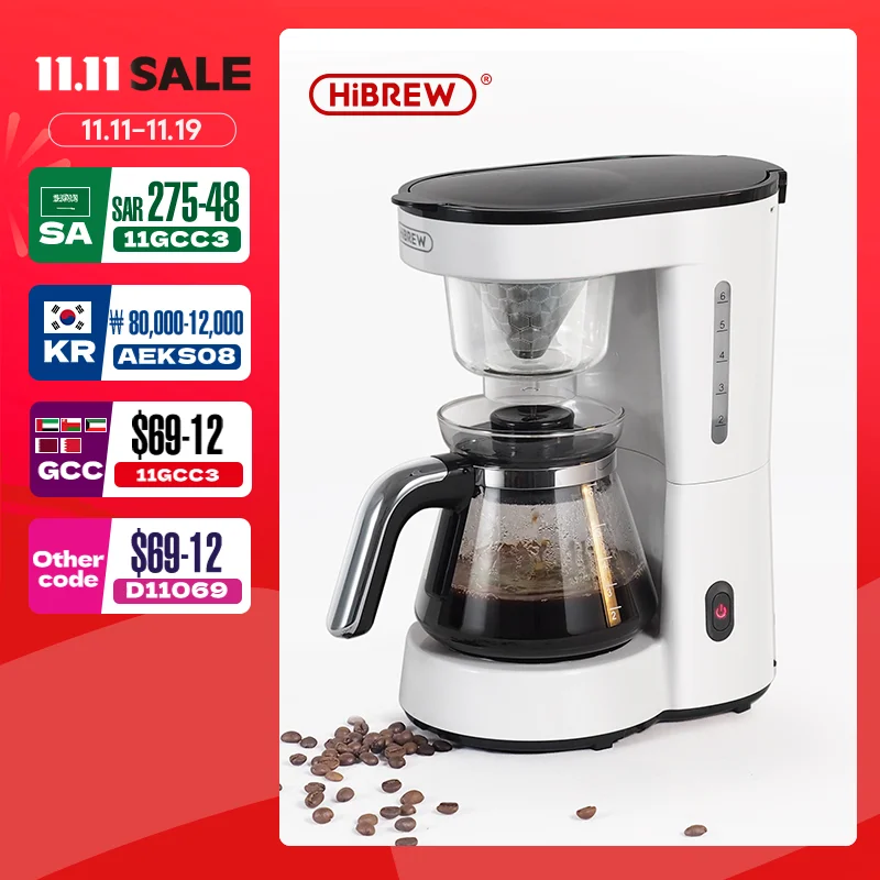 HiBREW 3 in 1 미국 드립 커피 기계 커피 위에 붓기 메이커 유리 찻주전자 뜨거운 차 메이커 750ML H12