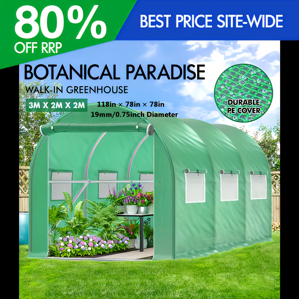TEMU 스틸 프레임과 포일 커버가 있는 정원 온실, 야외 식물 하우스 (창문 및 문 포함), 채소, 꽃, 식물용 휴대용 온실, 식물 보호 쉼터, 꽃 재배 온실, 스틸 프레임 온실, 창문 및 문 디자인, 환기 온실, 금속 구조 온실, 스틸 프레임 내구성, 가정용 채소 재배, 꽃 애호가를 위한 온실