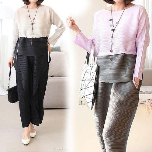 [쉬즈마담]P91978 믹싱스퀘어 플리츠 롱스커트 50대 엄마옷