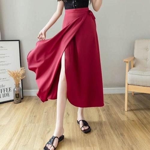 [다잇템]여성 넥타이 랩 시폰 리본 더블레이드 스커트