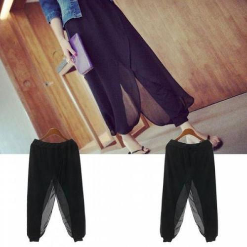 1+1 여자 쉬폰 배기 바지 빅사이즈 밴딩 치마바지 오버핏 안감 슬랙스 여름바지 데일리