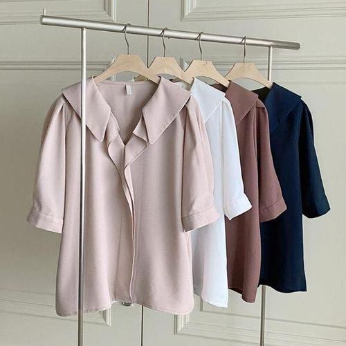 [다잇템]여성 반소매 베이직 크림색 시폰 블라우스