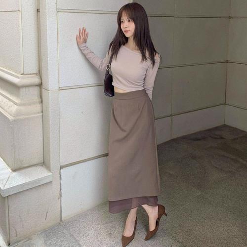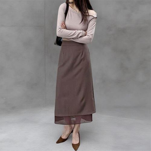 [옷자락]여성 일상용 쉬폰 레이어드 A라인 긴 치마