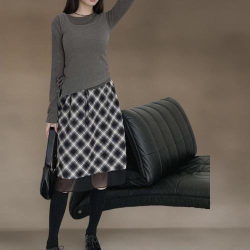 가을신상 롱스커트 미디 H A라인 에이 에이치라인 밴딩 체크 쉬폰 플레어 롱 청스커트 빅사이즈여성의류 치마 맥시 쉬폰 레이스 플리츠 니트 큰옷 66 77 88 99 100 110 하객룩 하이웨스트 정장 롱치마 밴딩 스판