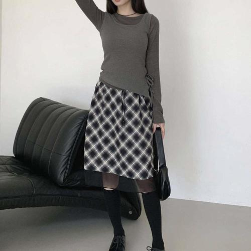 [다잇템]여성 격자 키치무드 시폰 쁘띠 코디 스커트