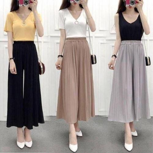 [셀러허브_여성트랜드패션]ONM 여성 플리츠 쉬폰 와이드 팬츠 7컬러