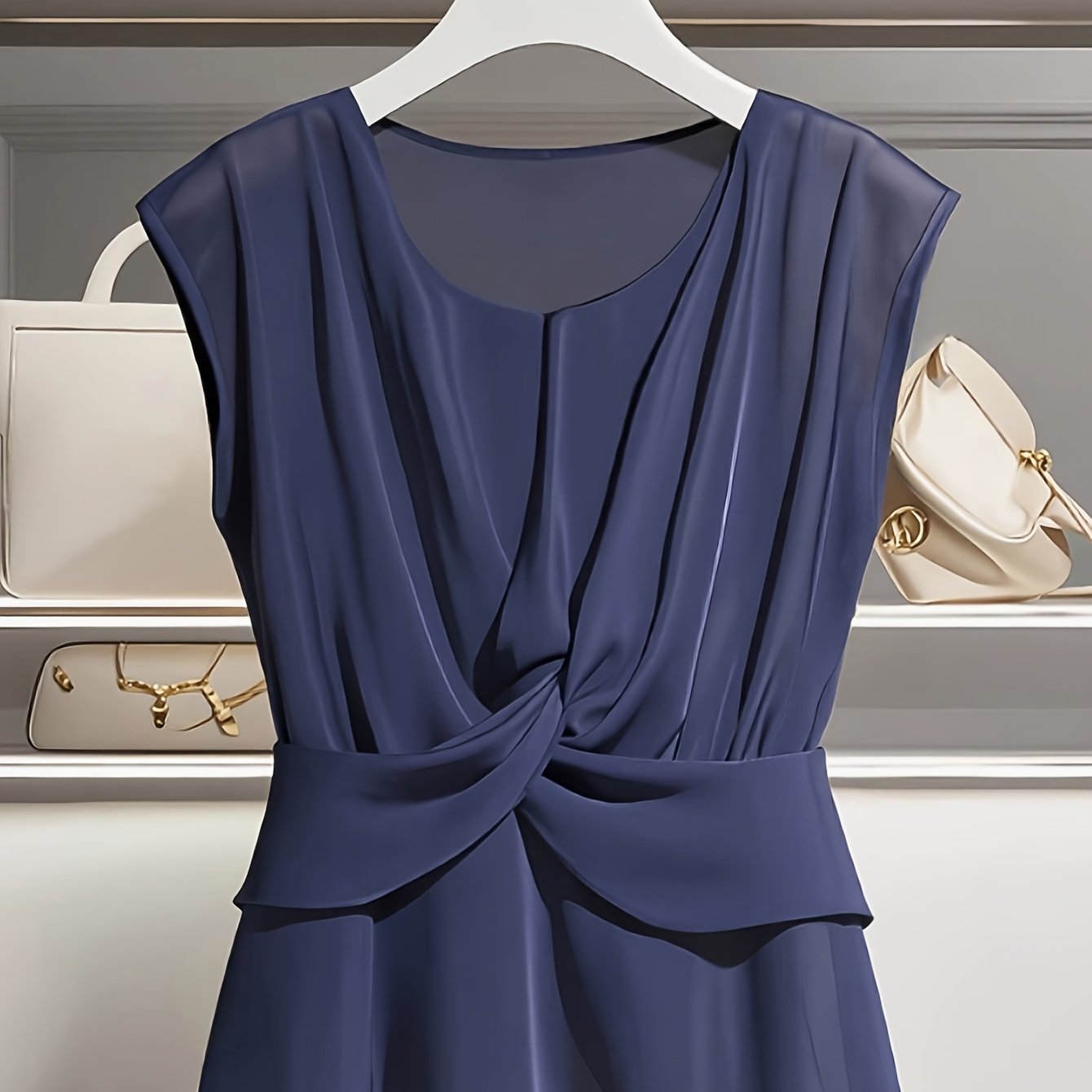 TEMU 여성용 가벼운 통기성 좋은 셔폰 블라우스 - 여름용 슬리브리스 탑, 앞면 , 둥근 넥, 허리 집착, 캐주얼 또는 세련된 옷으로 사용할 수 있는 단색, 다용도 패션, 여성스러운 스타일, 세련된 구성, 세련된 여성