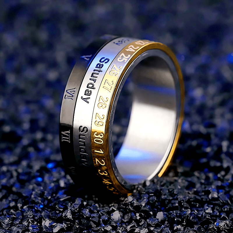 TEMU 레이저 인쇄 304 스테인레스 스틸 캘린더 링 - 로마 숫자 월요일부터 일요일까지 디스플레이, 가벼우면서 내구성이 뛰어난 디자인, 일상 출퇴근, 생일, 휴일용 - 현대 패션 액세서리 및 실용적인 선물, 기념일 선물 | 세련된 링 디자인 | 내구성이 뛰어난 304 스테인레스 스틸, 캘린더 보석
