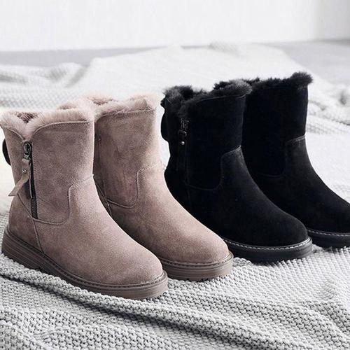 TEMU 여성용 따뜻한 겨울 앵클 부츠, 편안한 안감 플랫 부츠, 슬립온 라운드 토 솔리드 컬러 미드 캐프 패션 부츠 (중장년 및 노년층용)|여성운동화