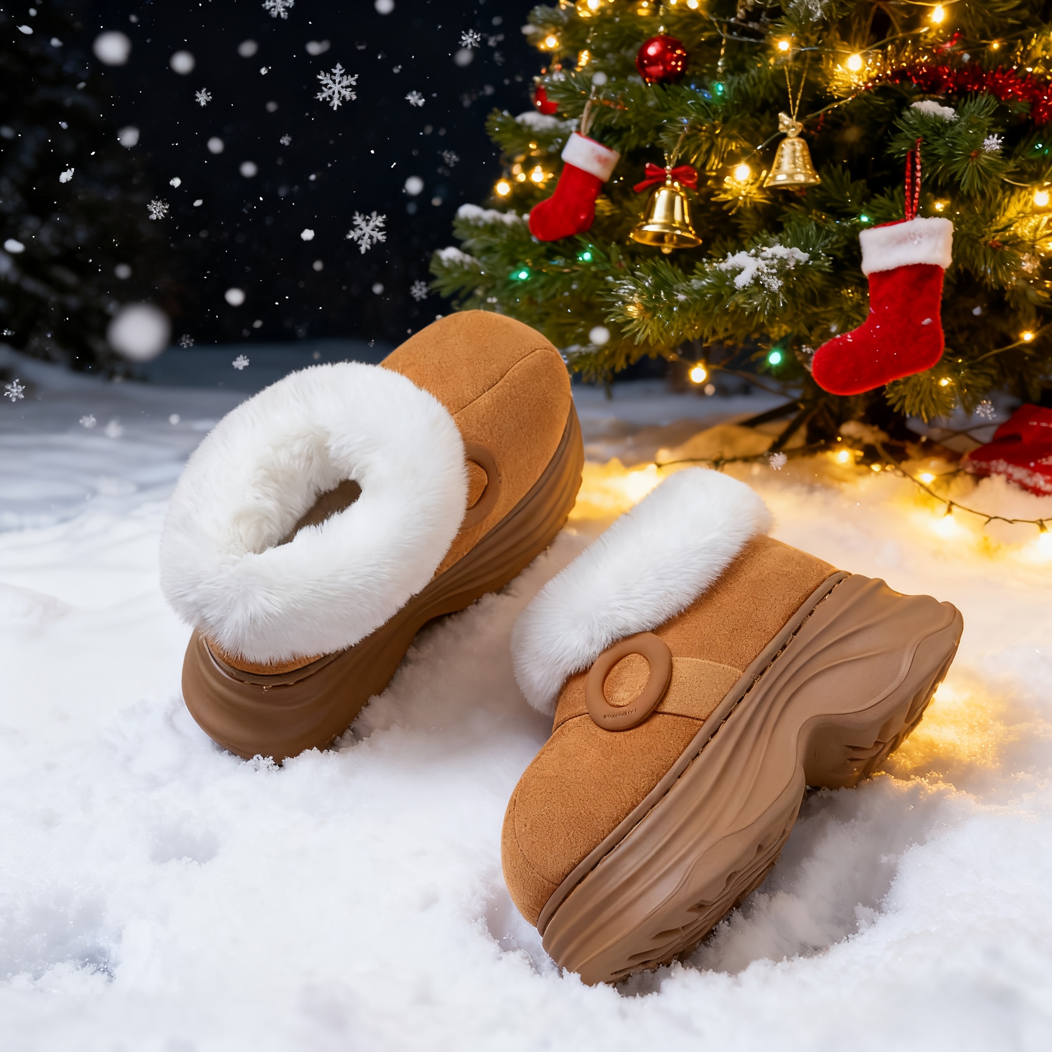 TEMU 2025 신상 여성용 두꺼운 밑창 따뜻한 앵클 부츠, 아웃도어 두꺼운 밑창 하이힐 따뜻한 신발, 안감 두꺼운 슬립온 스노우 부츠