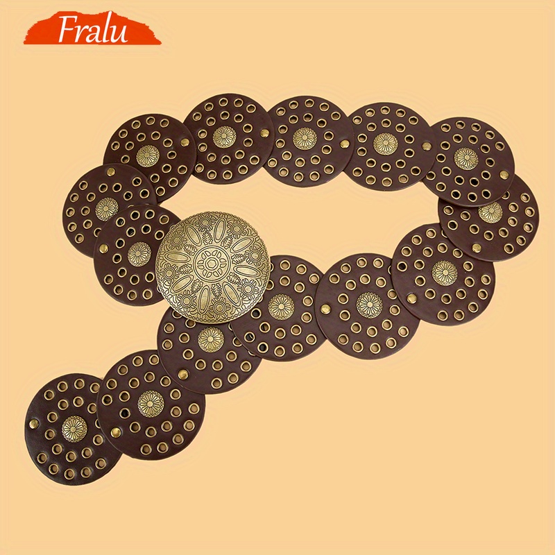 TEMU 1개 레트로 웨스턴 유럽&아메리칸 라운드 링 리벳 스플라이싱 벨트, 메탈 디스크 버클 - 여성 파티 및 데일리 웨어에 완벽한 아이템